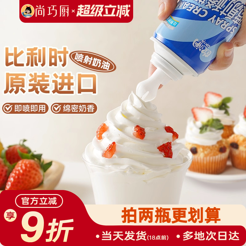 迪比克喷射奶油700ml 即食免打发稀奶油动物奶油烘焙蛋糕裱花家用