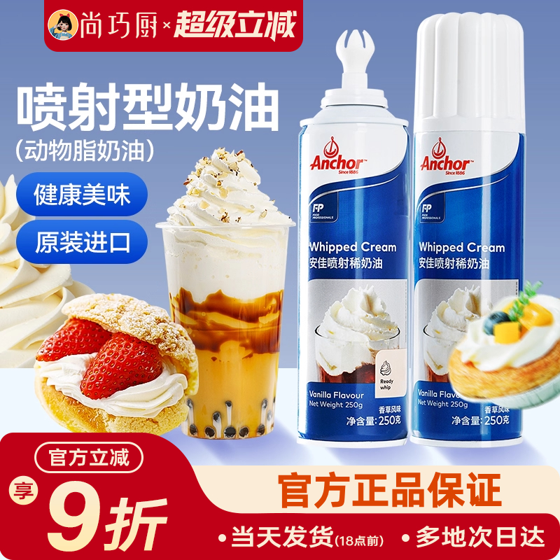 进口安佳喷射奶油250g动物奶油即食免打发蛋糕咖啡雪顶奶茶店专用