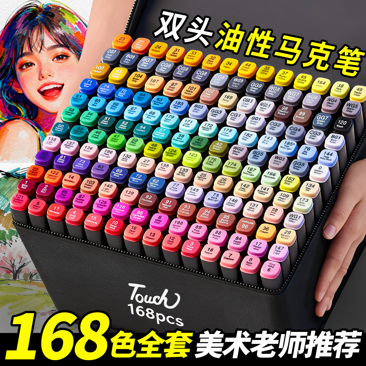 油性马克笔套装美术专用双头速干不透色水彩笔48/60/80/120/168色小学生动漫画笔儿童绘画幼儿园初中生彩色笔