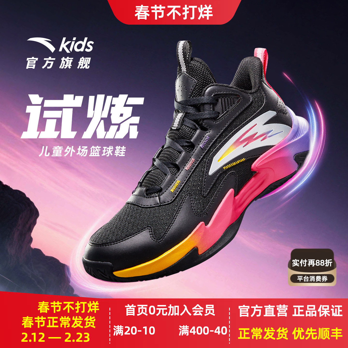 安踏儿童男大童篮球鞋2026秋冬新款减震防滑学生球鞋高帮运动鞋子