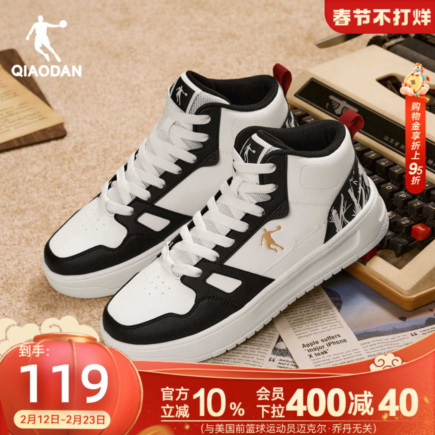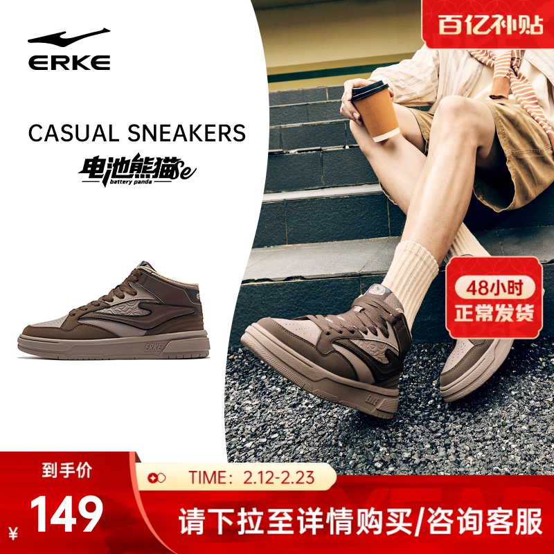 电池熊猫5鸿星尔克板鞋男鞋秋季新款高帮休闲鞋子皮面学生运动鞋