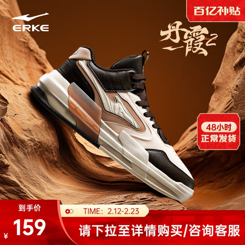 丹霞鸿星尔克高帮板鞋男鞋冬季厚底潮流休闲鞋学生运动鞋男滑板鞋