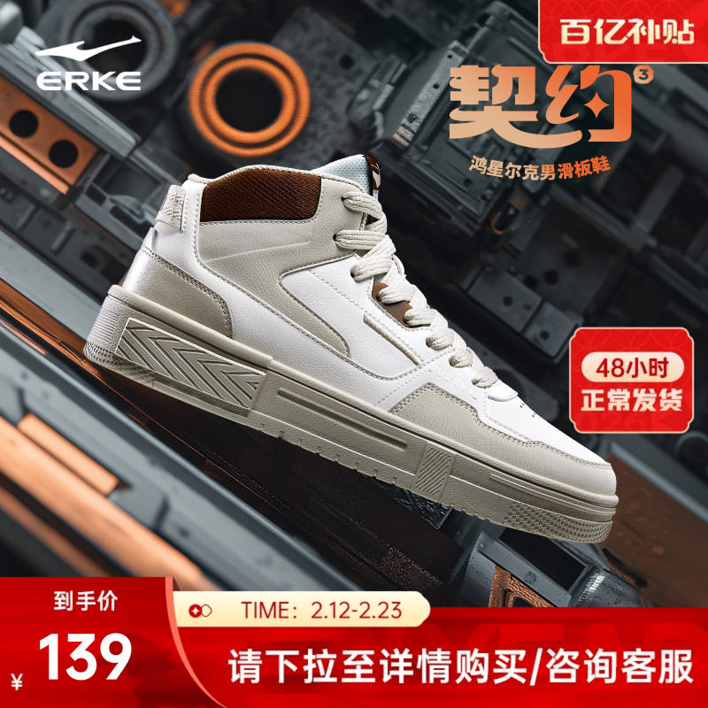 契约4 鸿星尔克板鞋男鞋秋季皮面休闲鞋子学生百搭高帮运动鞋正品