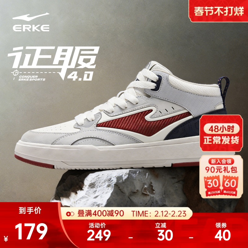 征服4|鸿星尔克板鞋高帮男鞋夏季皮面增高休闲鞋学生百搭运动鞋子