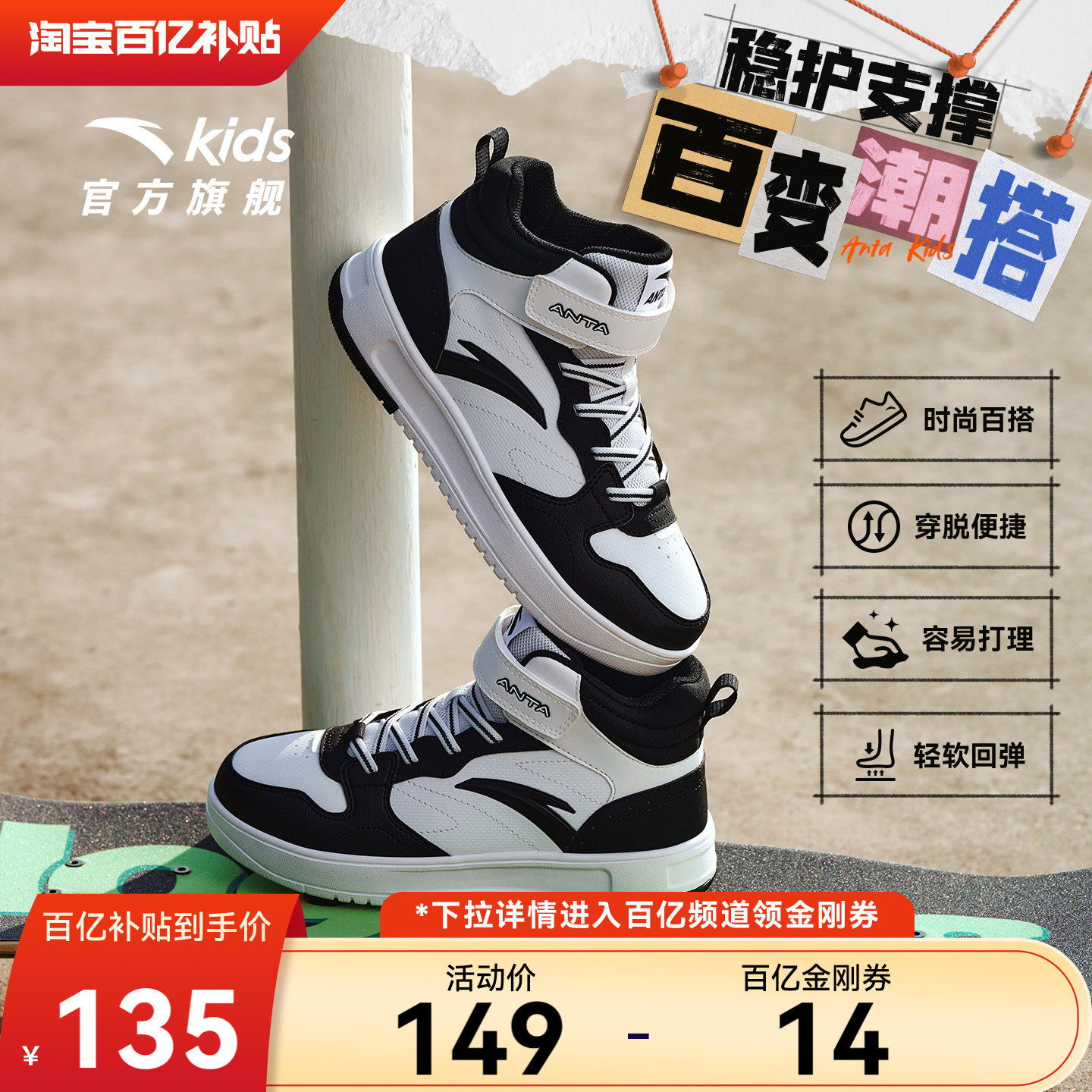 安踏儿童板鞋男童鞋2025冬季小白鞋学生运动鞋高帮滑板鞋女童