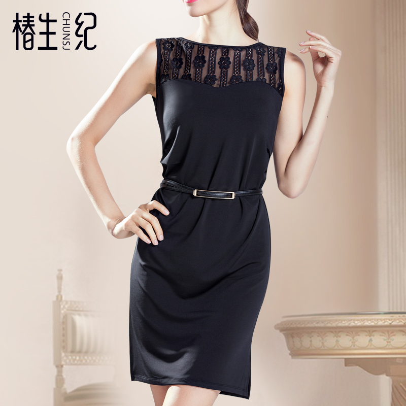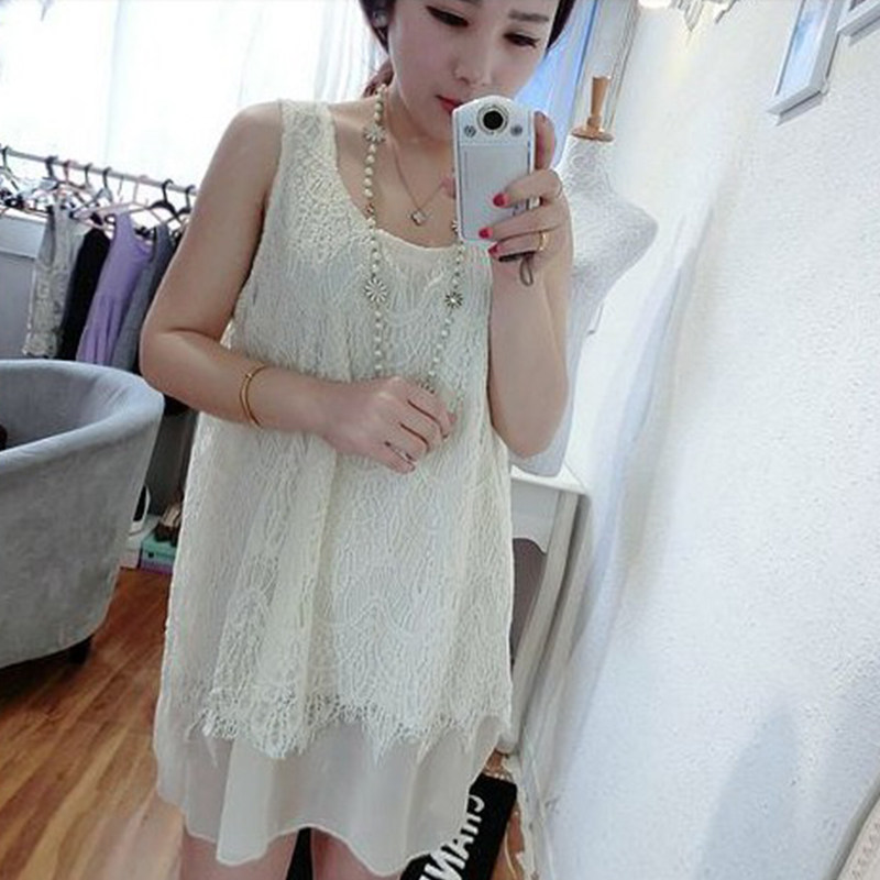无袖蕾丝连衣裙春夏内搭洋气显瘦大码气质轻熟风拼接雪纺背心裙子
