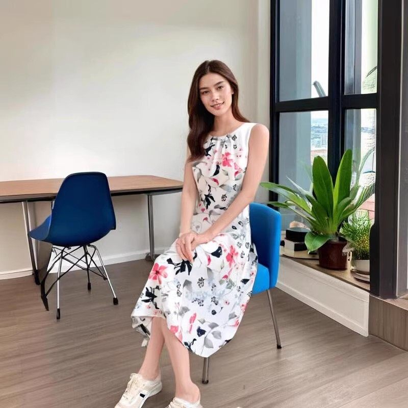 2021春夏蕾丝无袖背心裙雪纺连衣裙显瘦大码欧美气质通勤OL女装