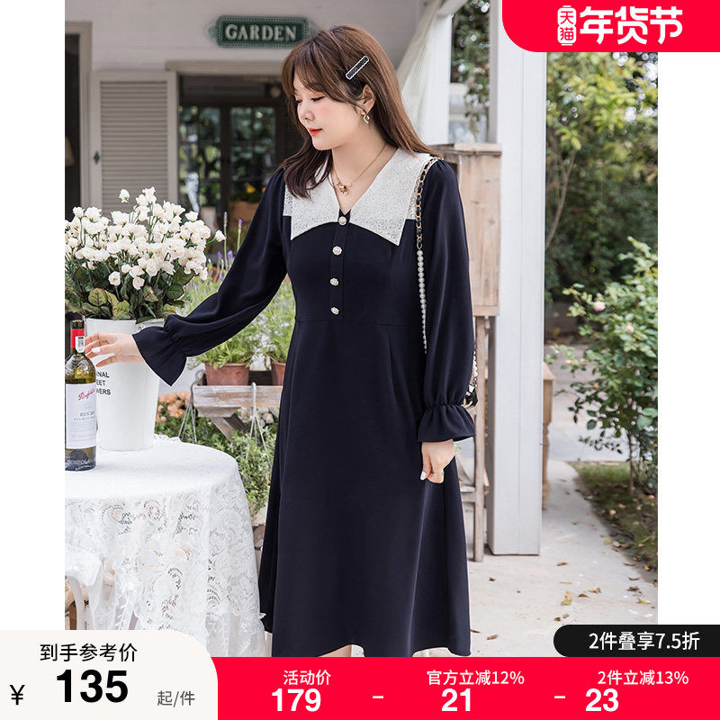 大码女装2025春秋新款胖mm时尚显瘦中长款韩版蕾丝雪纺连衣裙子女