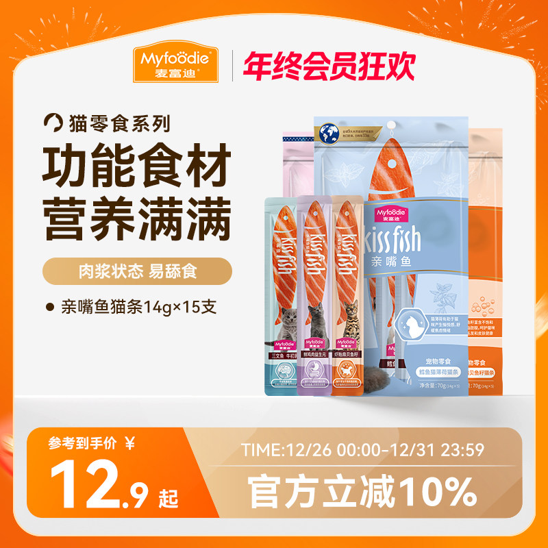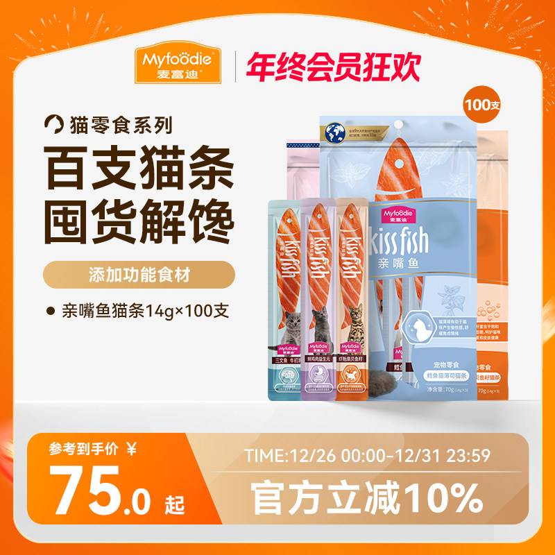 麦富迪亲嘴鱼猫条湿粮包猫咪猫零食100支整箱可选补水营养成幼猫
