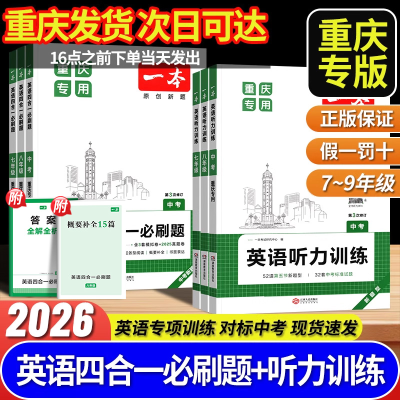 2025秋重庆专版一本中考英语听力训练初中七八九年级英语四合一必刷题阅读一本官方旗舰店小学升初中中考英语专项训练中学教辅书籍