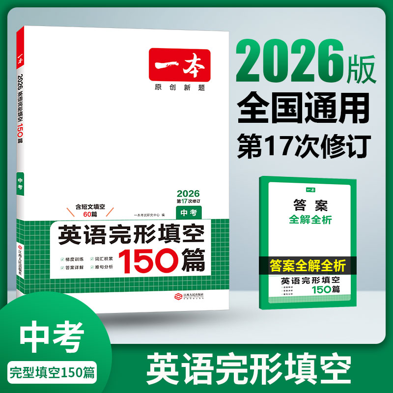 2026一本中考英语完形填空与阅读理解150篇 初中九年级英语完形填空与阅读理解组合专项训练题 初三英语试题精选练习题库模拟真题