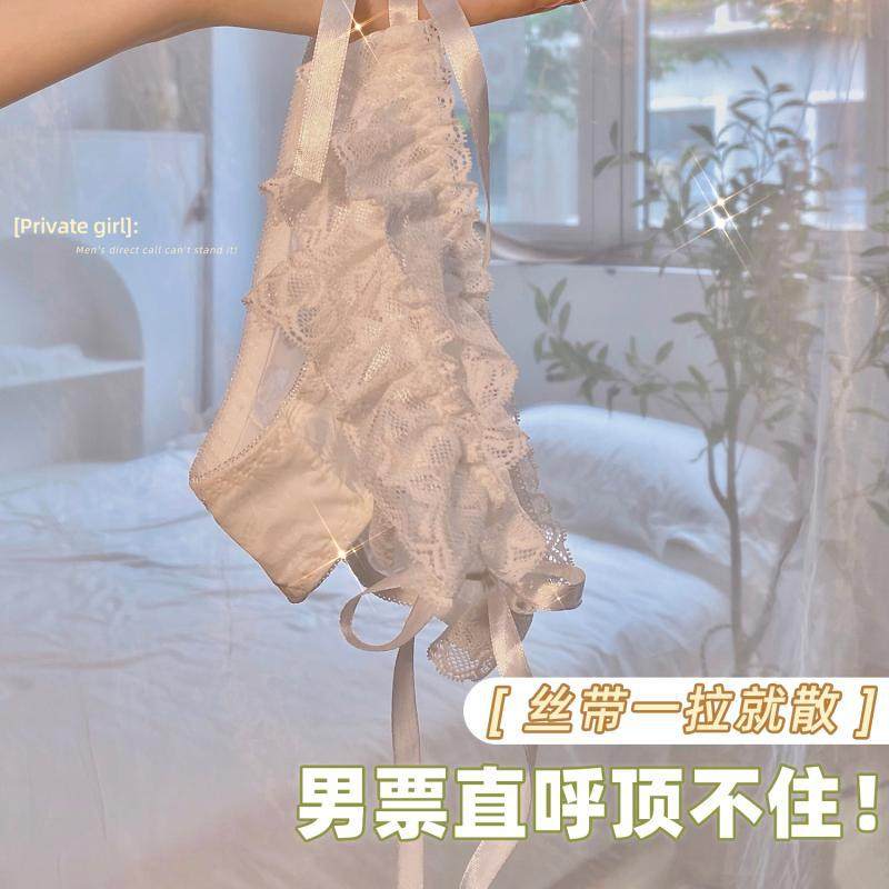 【私房少女】 纯欲系带可拆卸洛丽塔层层蕾丝诱惑冰丝女内裤棉裆