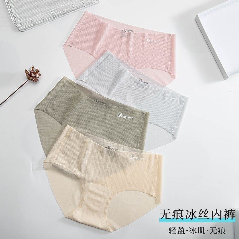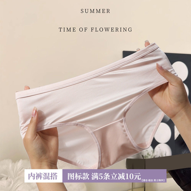无痕冰丝女内裤夏季新款裸感10A抗菌隐形不夹臀中腰冰丝三角短裤