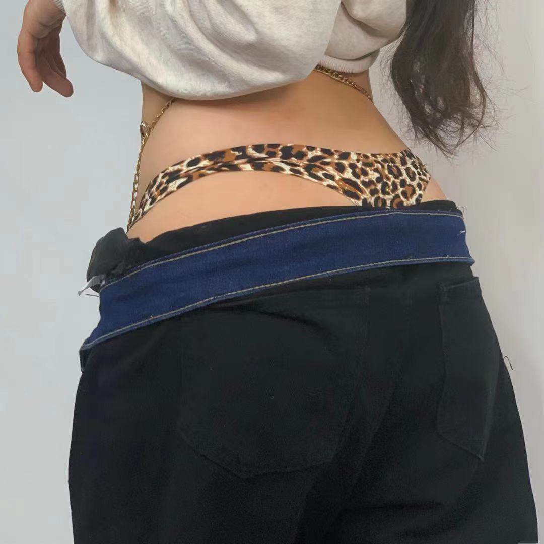 冰丝女内裤中腰性感时尚豹纹诱惑透明速干网纱蕾丝无痕镂空三角裤