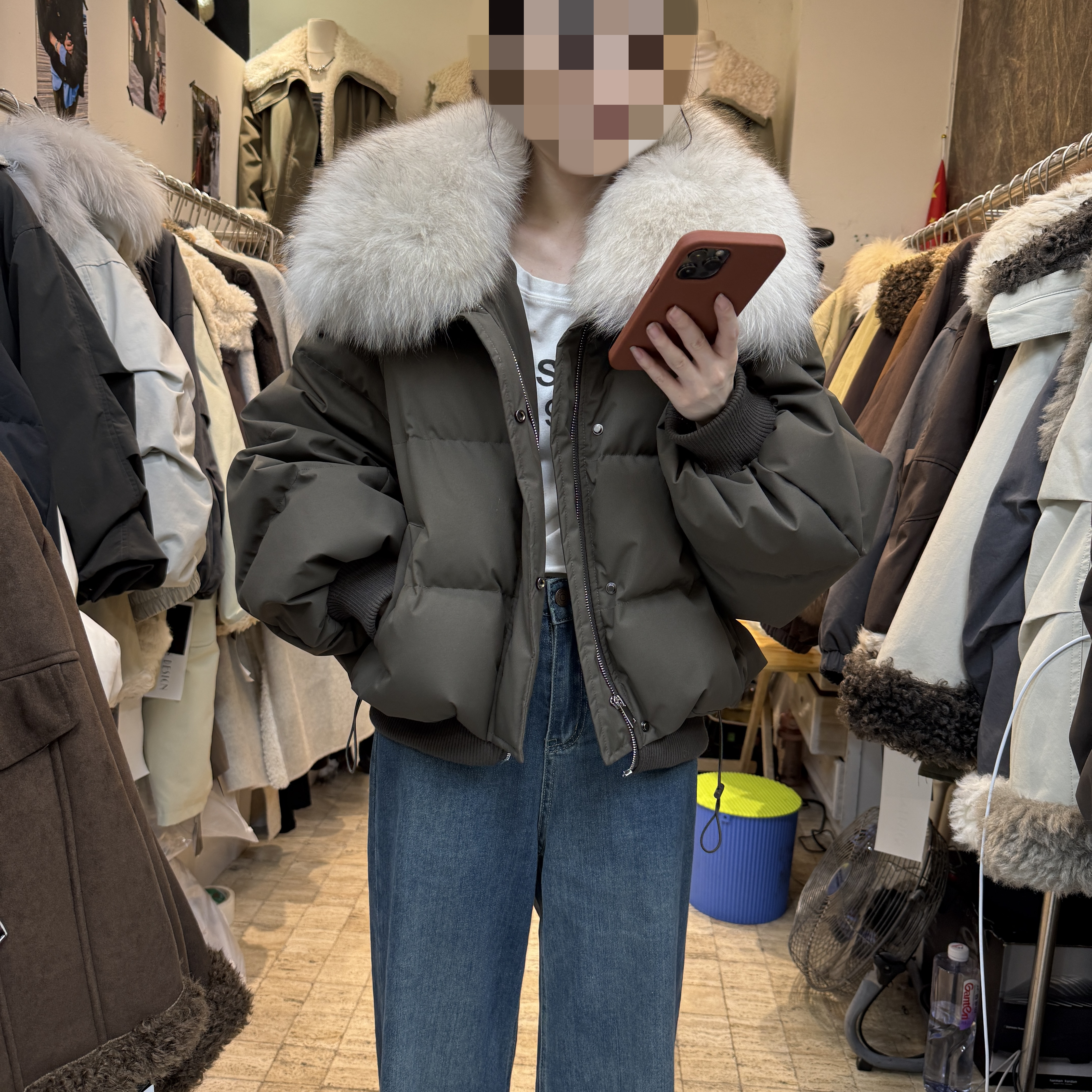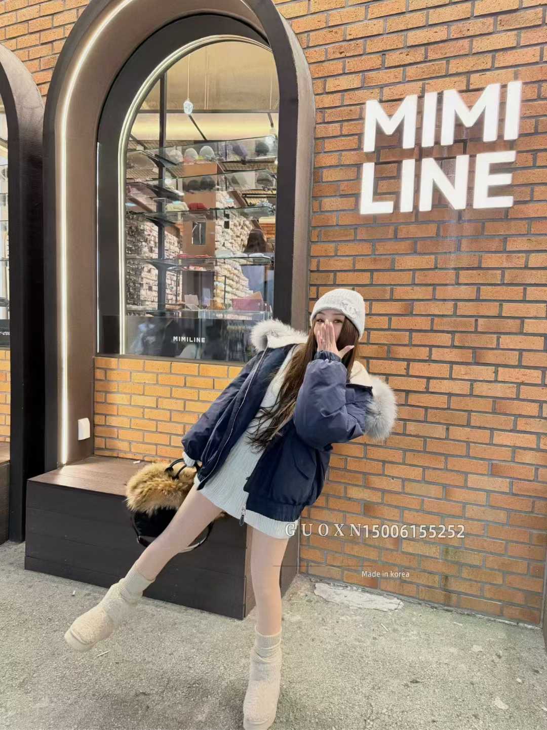 - 韩国大毛领羽绒服中长款