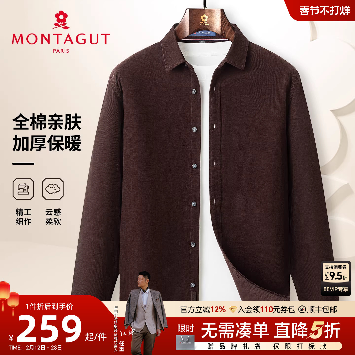 [全棉灯芯条绒]梦特娇男士长袖衬衫26春季休闲纯棉弹衬衣厚保暖J