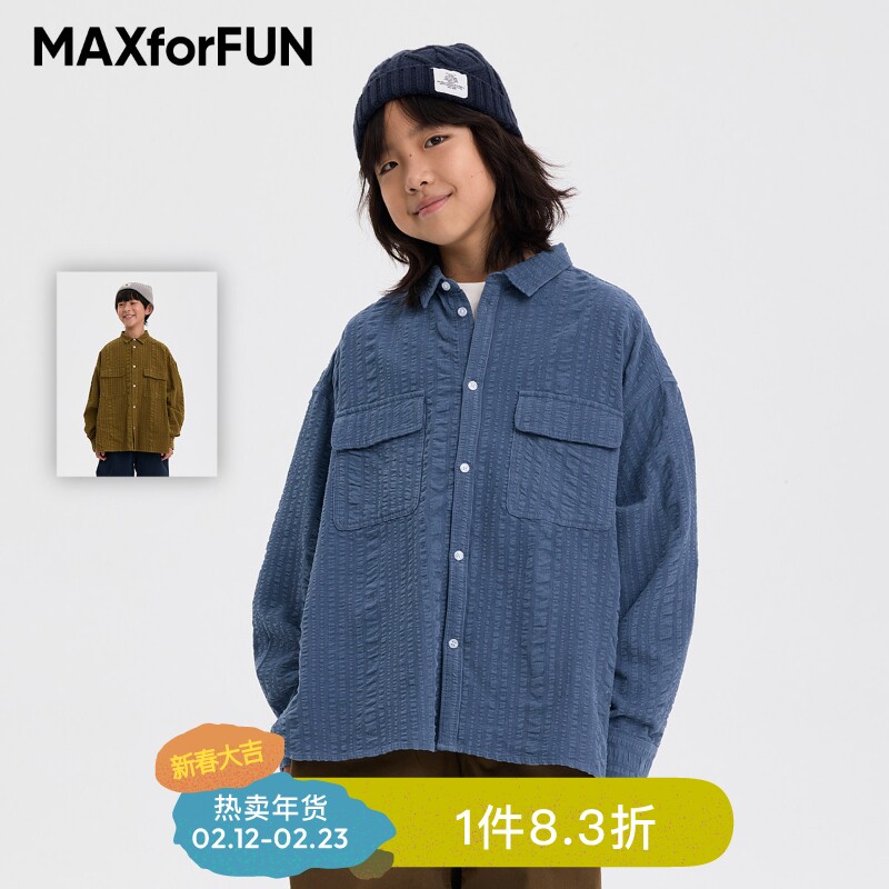 MAXforFUN童装25秋冬儿童条纹灯芯绒衬衫宽松长袖开衫纯棉男女童