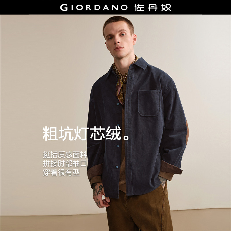 佐丹奴设计师款男装复古风纯棉拼色宽松灯芯绒衬衫男长袖18045802