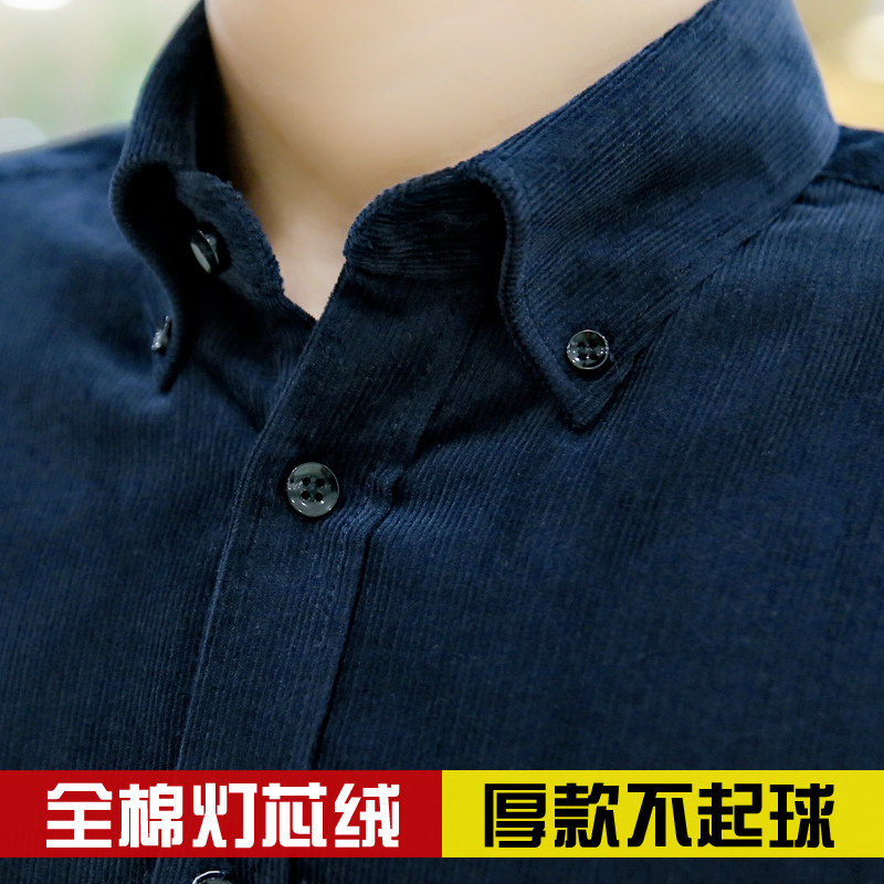 秋纯棉灯芯绒长袖衬衫男条绒衬衣中年男加绒加厚保暖衬衫磨毛上衣