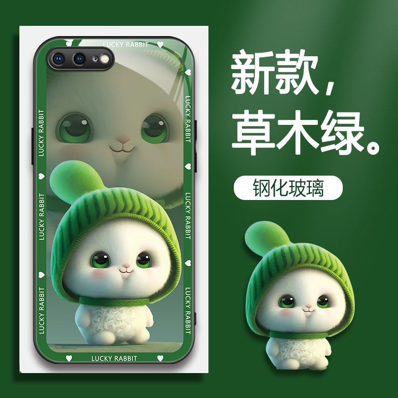 适用iphone苹果7plus手机壳5.5寸的手机套新款防摔软壳硅胶玻璃男女款呆萌兔网红可爱情侣卡通超薄全包个性潮