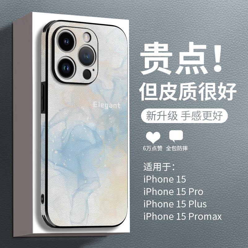 砂钻水墨适用iphone15手机壳新款苹果15promax全包14防摔15pro皮纹13女款12高端11的xs爆款7plus超薄ipone套