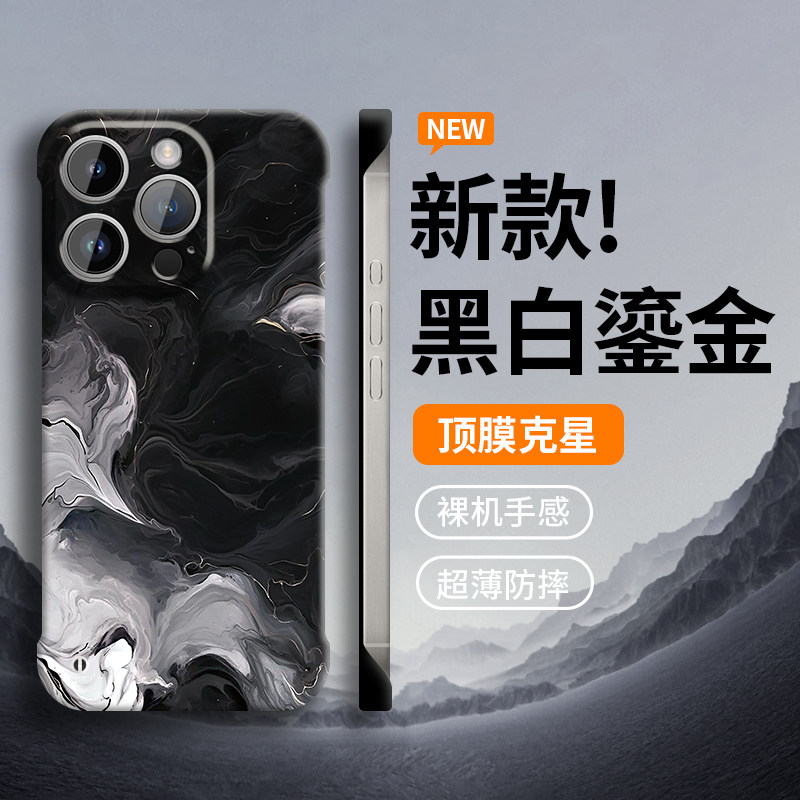 黑白鎏金适用苹果15手机壳iphone新款14pro无边框14保13护12男女套promax外壳超薄后plus镜11头pro的8防x摔7