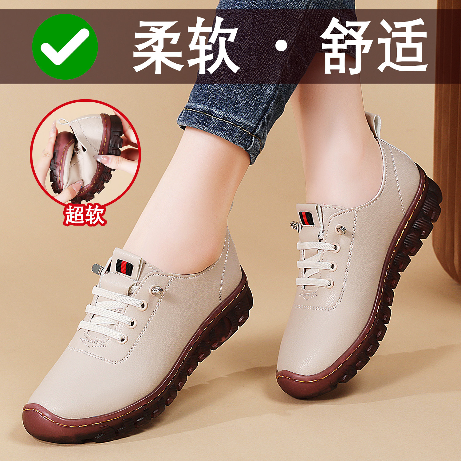超软真皮软底豆豆鞋女秋季新款休闲防滑平底单鞋舒适牛筋底妈妈鞋
