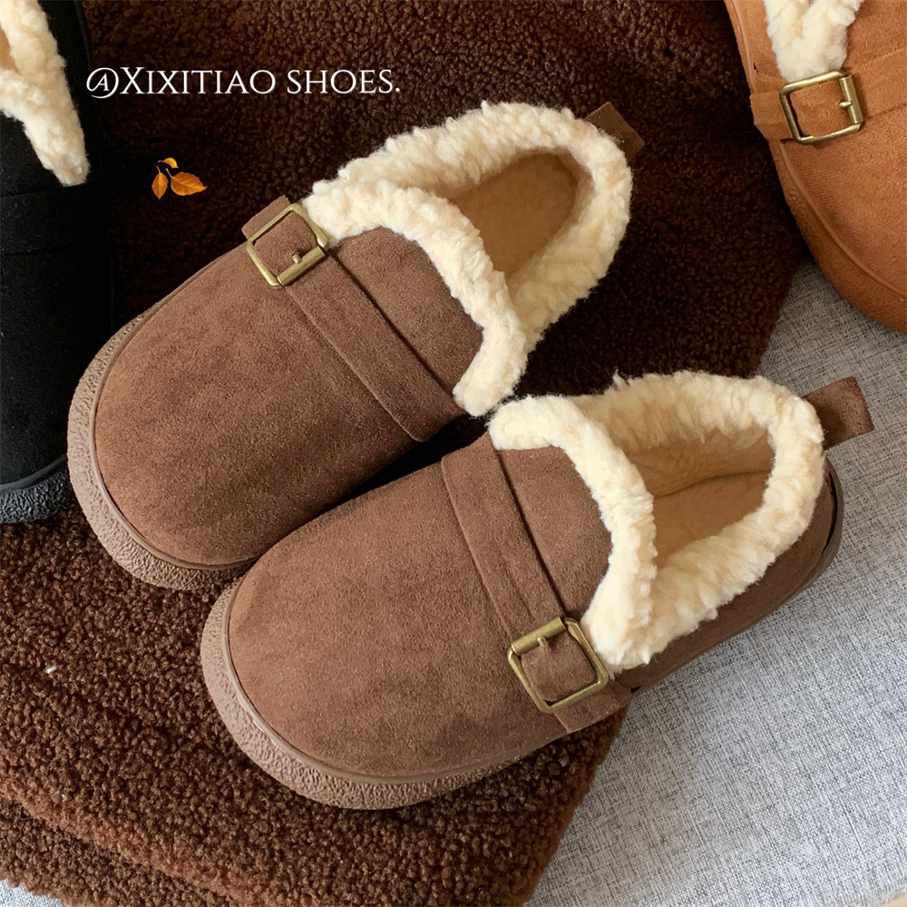 细细条 韩版ins复古百搭学生棉鞋女秋冬季外穿加绒保暖乐福豆豆鞋