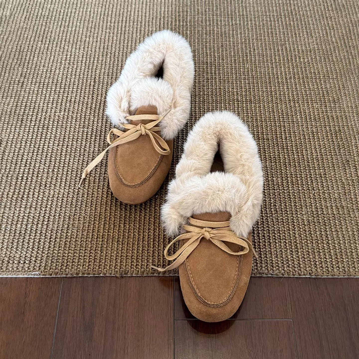 OZZEG2025新款豆豆鞋女秋冬加绒皮毛一体防滑保暖一脚蹬毛毛棉鞋