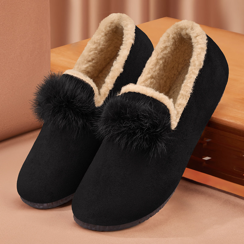保暖防滑棉拖鞋复古百搭加绒乐福豆豆鞋女秋冬季全包跟软底勃肯鞋