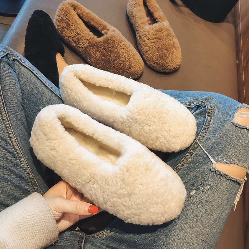 羊羔毛豆豆鞋女秋冬网红平底加绒单鞋一脚蹬毛毛鞋皮毛一体棉瓢鞋
