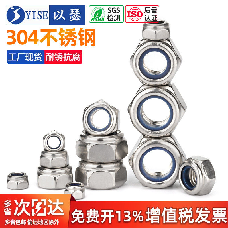 304/201不锈钢锁紧螺母防松尼龙六角防滑自锁螺丝帽M3M4M5M6M8M30
