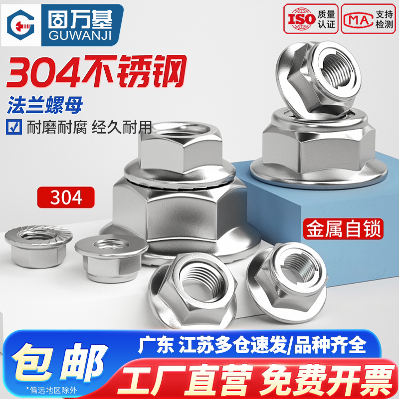 304不锈钢法兰锁紧螺母六角螺帽金属防松防滑螺丝帽M5M6M8M10M12