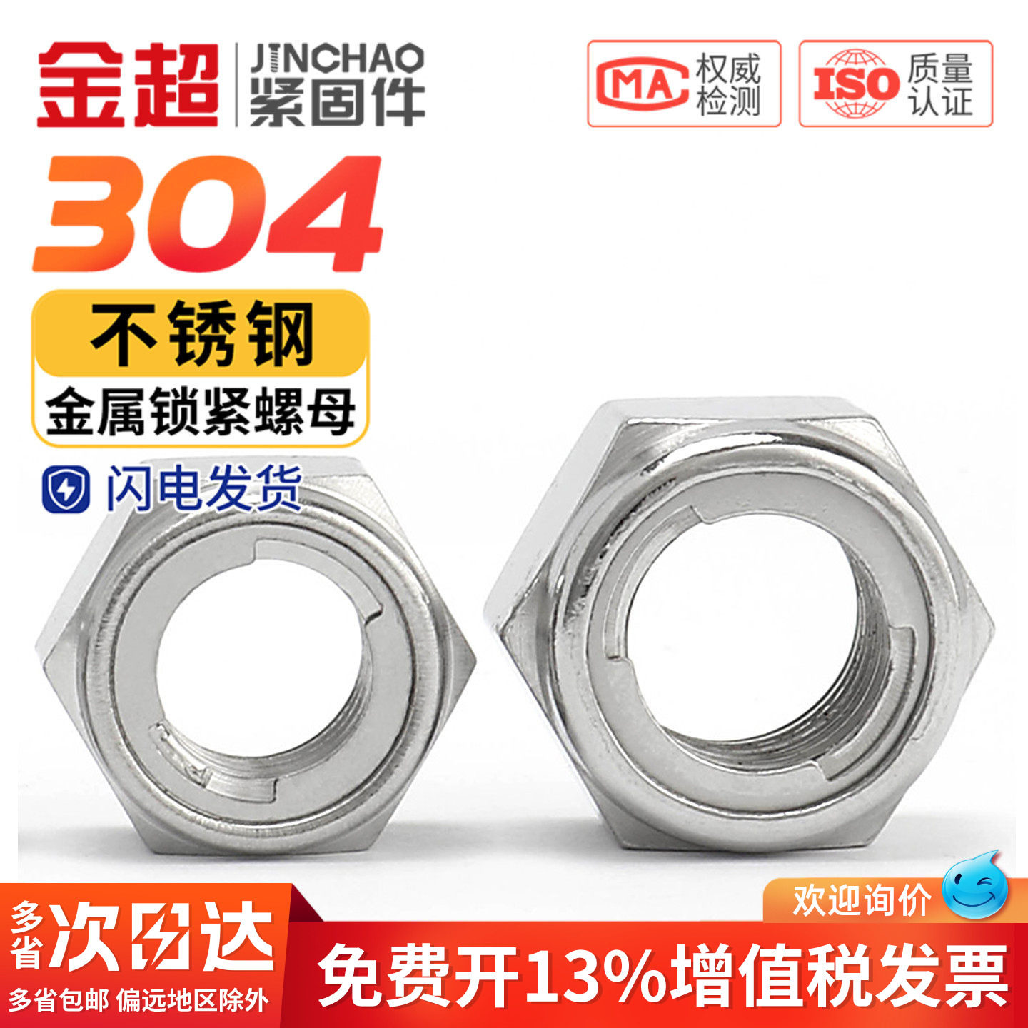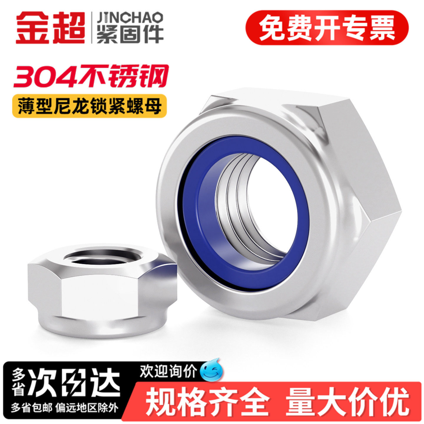 金超304薄型不锈钢尼龙锁紧螺母六角防滑防松螺丝帽M3M4M5M6M8M10