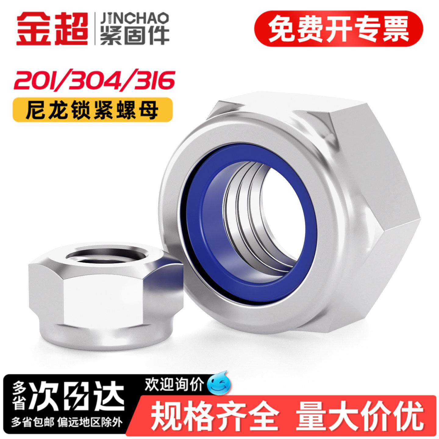 金超304/316不锈钢尼龙锁紧螺母六角防滑防松螺丝帽M3M4M5M6M8M10