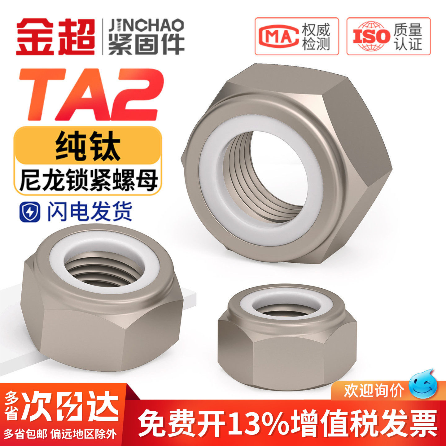 TA2钛尼龙锁紧螺母防滑锁紧螺帽自锁尼龙螺丝帽M3M4M5M6M8M10M12