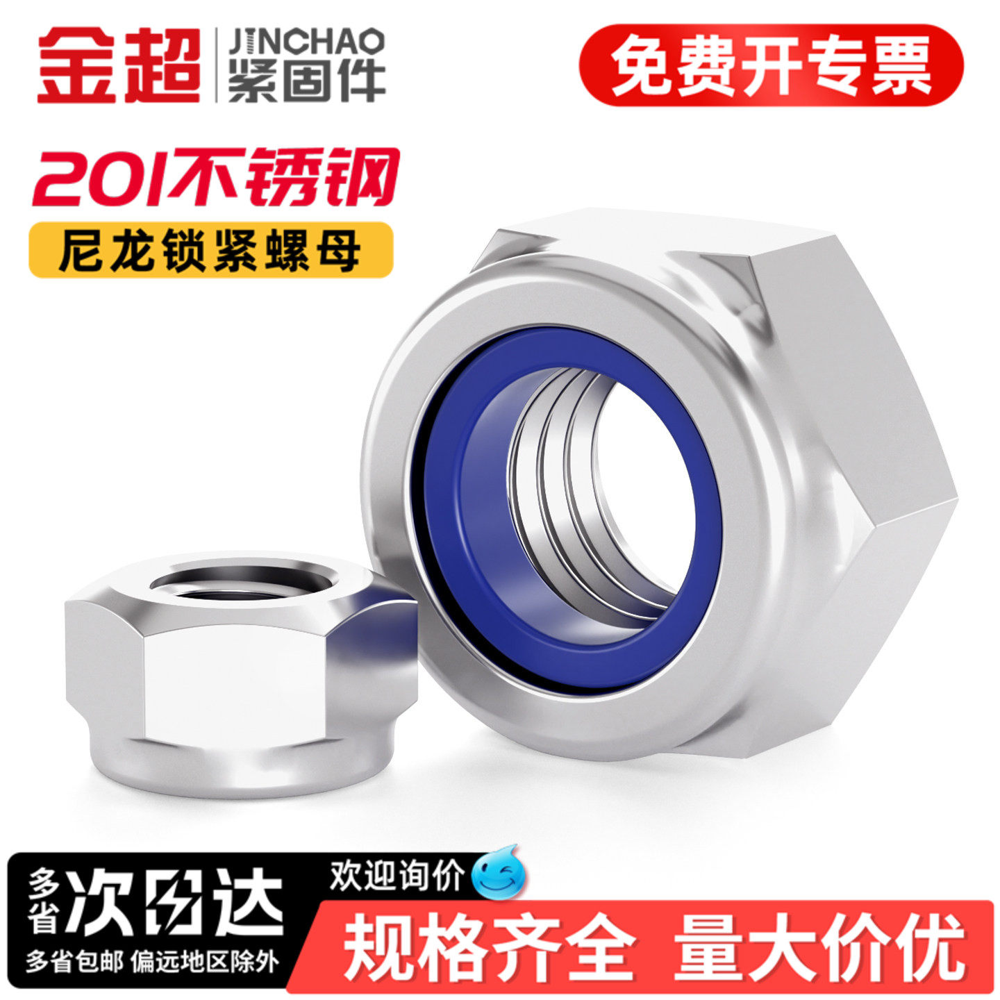 金超201不锈钢尼龙锁紧螺母六角防滑防松自锁螺丝帽M3M4M5M6M8M10