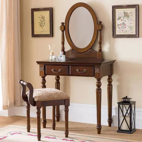 简约美式乡村实木梳妆台欧式复古小化妆台卧室小户型化妆镜化妆桌