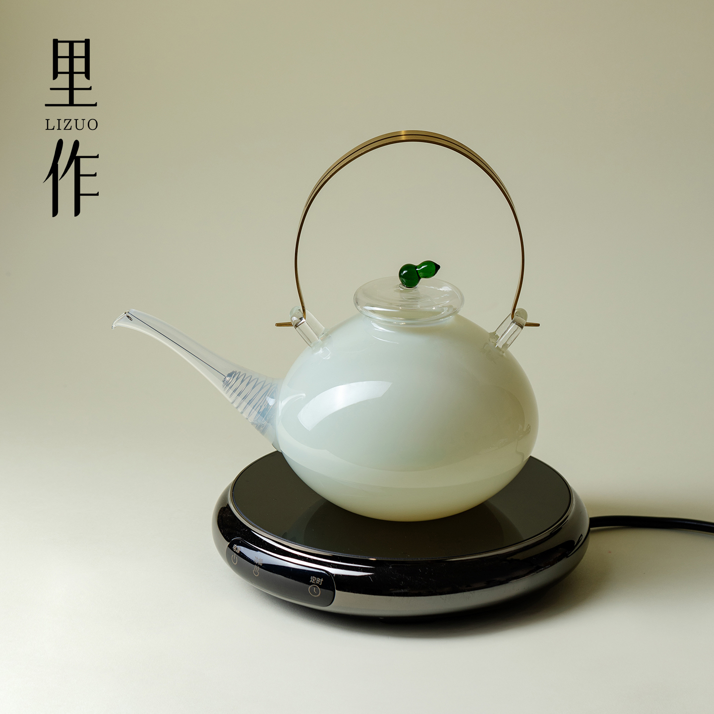 里作冰玉玻璃铜提梁煮茶壶家用静音电陶炉烧水壶新中式创意煮茶器