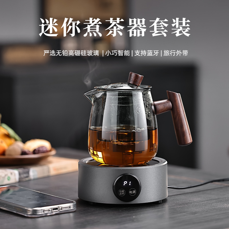 小型静音电陶炉迷你一人煮茶器玻璃泡茶壶办公户外便携煮茶炉套装