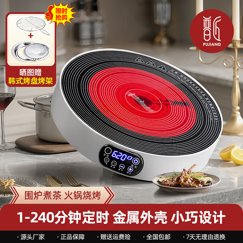 普匠电陶炉静音家用爆炒火锅智能小型多功能电磁炉一体锅便携圆形