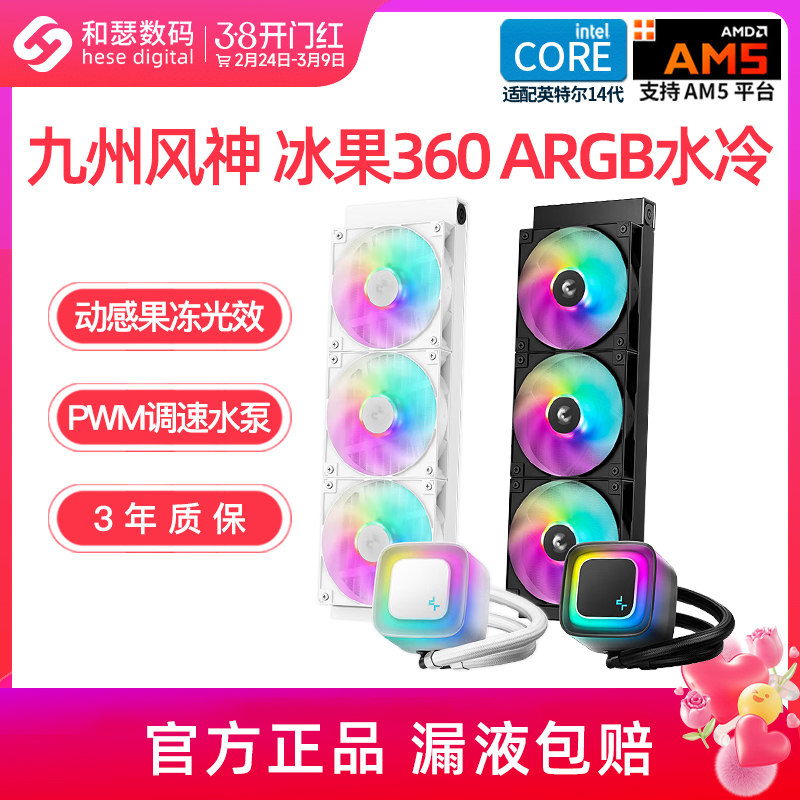 九州风神360水冷冰果台式机电脑一体式CPU散热器ARGB神光同步白色