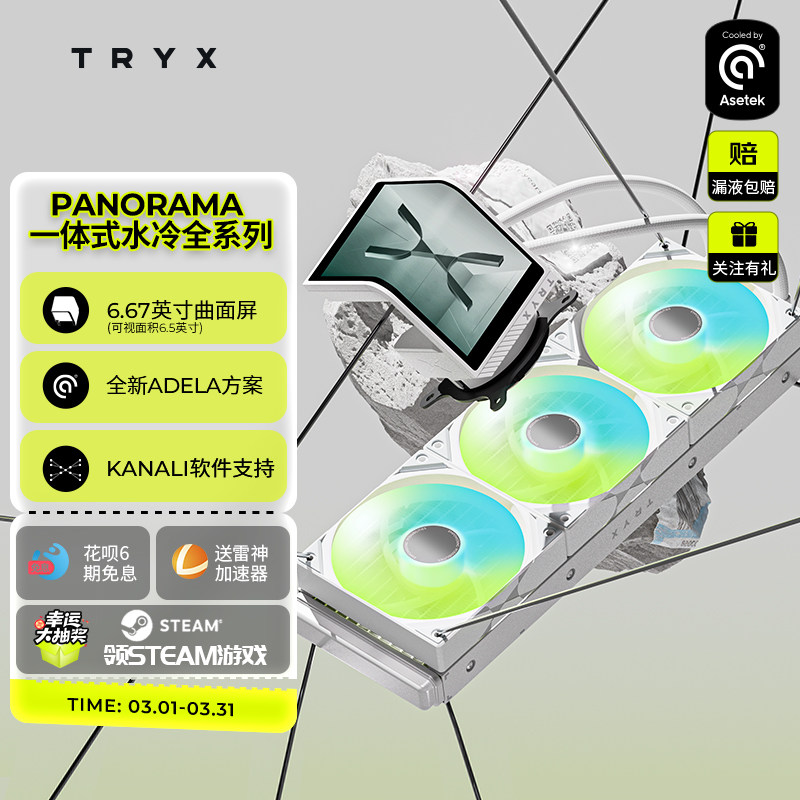 TRYX创氪星系PANORAMA展域SE 240 360 ARGB水冷曲面屏CPU散热器