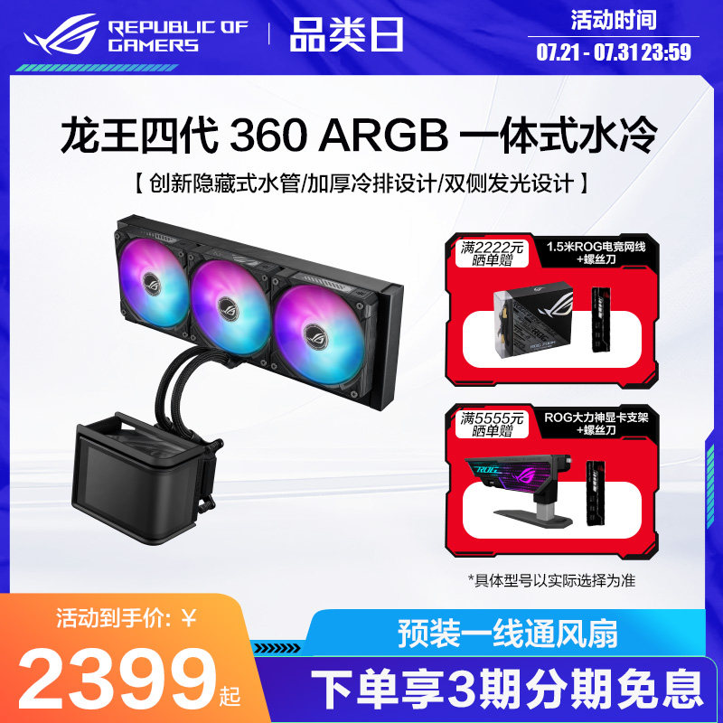 华硕ROG龙王4代曲面屏360ARGB一体式CPU水冷散热器电脑机箱风扇