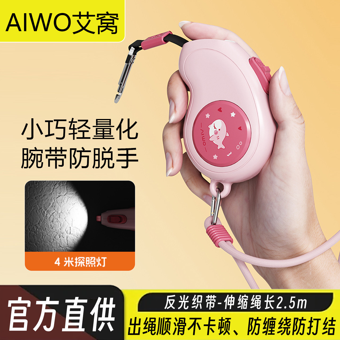 艾窝狗狗自动伸缩牵引绳灯光可照明溜狗绳泰迪比熊中小型犬牵引绳