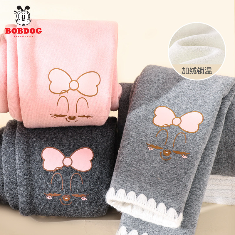 巴布豆女童加绒裤子加厚一体 绒儿童保暖冬装小女孩打底裤宝宝冬