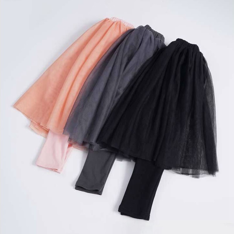 长裤休闲假两件裙裤小女孩打底裤子女童春秋冬季加绒网纱拼接裤裙