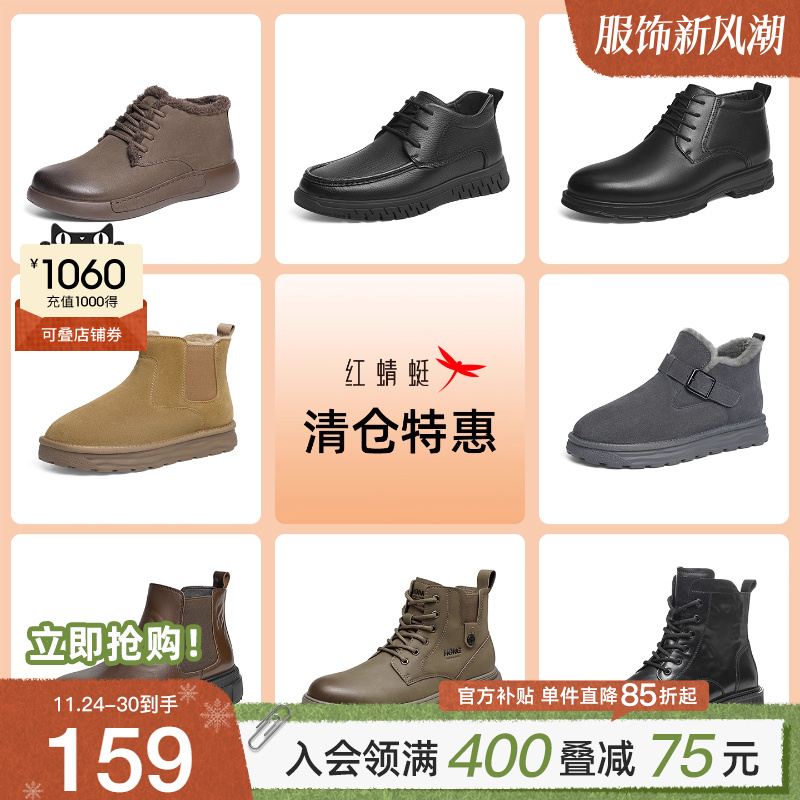 红蜻蜓马丁靴男秋冬季款男鞋复古英伦风男士增高单靴户外机车靴子