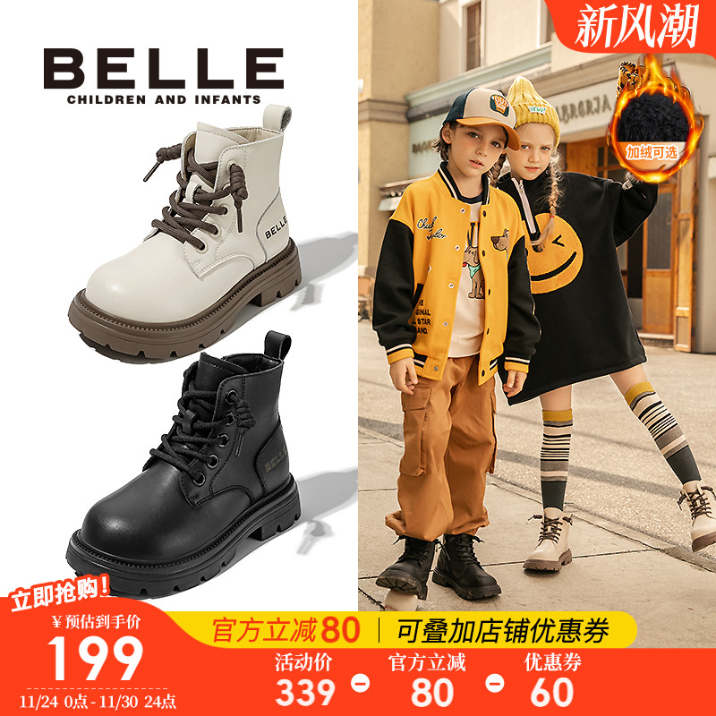 百丽童鞋女童马丁靴2025秋冬新款男童英伦风短靴儿童皮靴宝宝公主