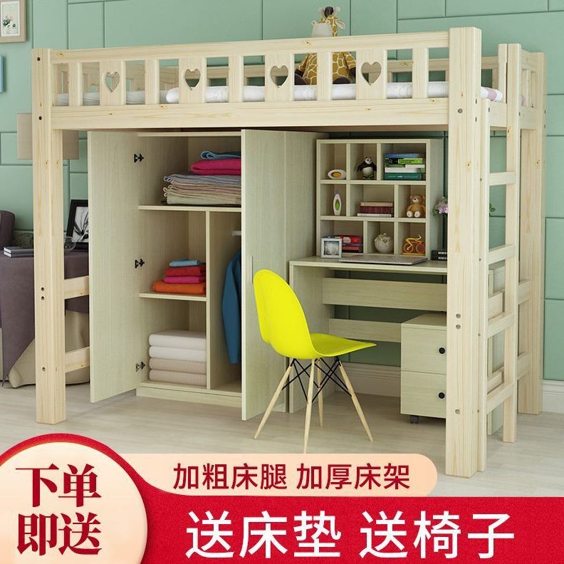 儿童实木组合书桌床一体上下高低床宿舍柜大学生带多功能上床下桌